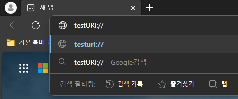 웹브라우저 주소창에 내가 만든 URI Scheme 이름을 입력하면 됨. 초간단. 내가 만든 이름은 testURI이니까 뒤에 :// 까지 붙여서 실행해주면